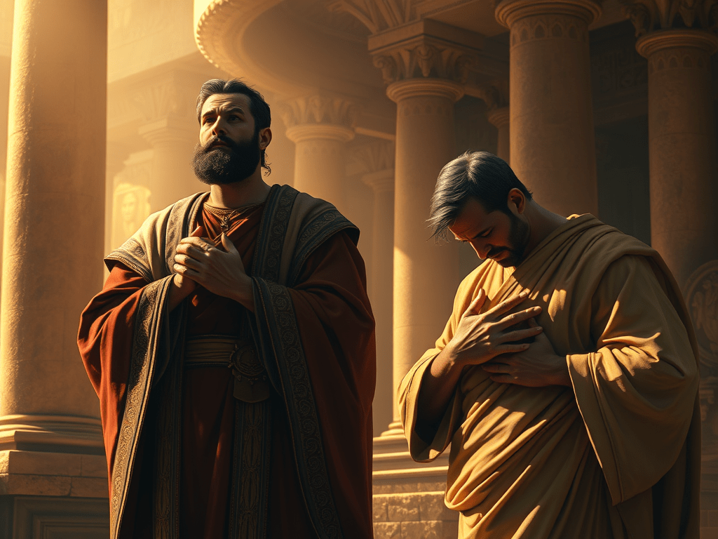 Two men went up into the temple to pray; the one a Pharisee, and the other a publican.